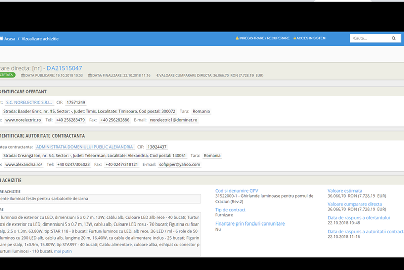 Alexandria cumpără ghirlande luminoase de peste 36.000 lei