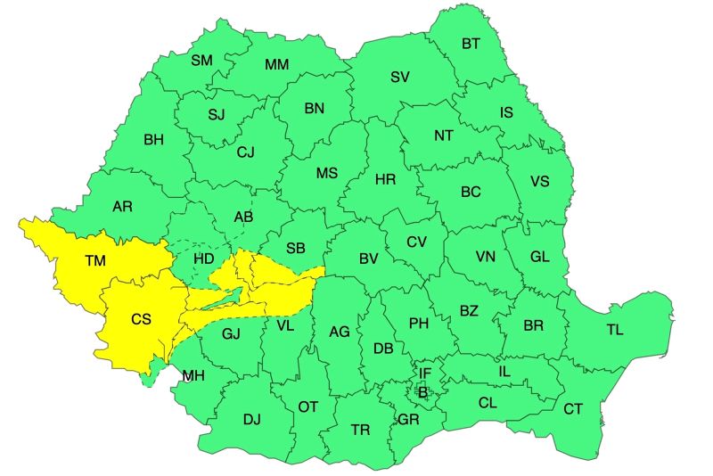 ATENȚIONARE METEOROLOGICĂ - COD GALBEN în intervalul 10 septembrie, ora 20 – 11 septembrie, ora 12