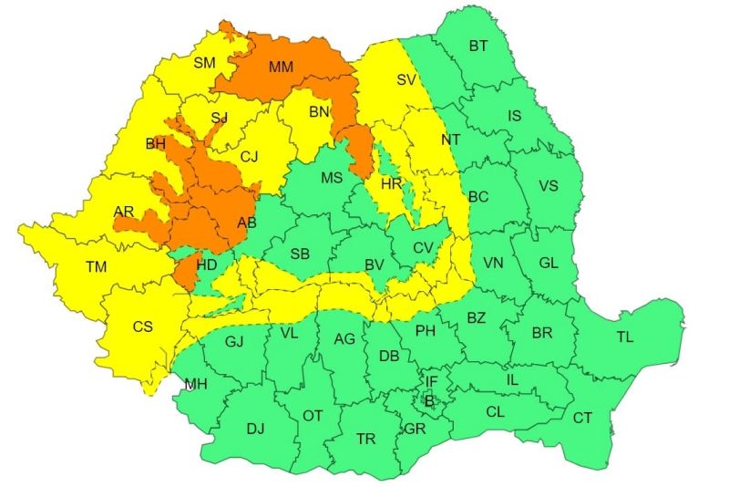 Coduri galben și portocaliu de ploi - ANM a emis avertizările - Harta cu zonele cele mai afectate