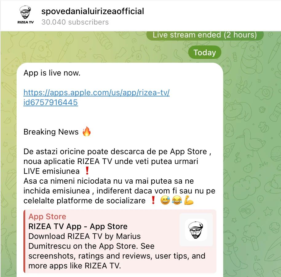 Potrivit anunțului, lansarea aplicației reprezintă un pas important spre independență media și o modalitate de a rămâne conectați cu publicul, fără a depinde de alte rețele de socializare. Astfel, indiferent de eventualele restricții sau schimbări pe alte platforme, emisiunea va continua să fie difuzată fără întreruperi în aplicația proprie.