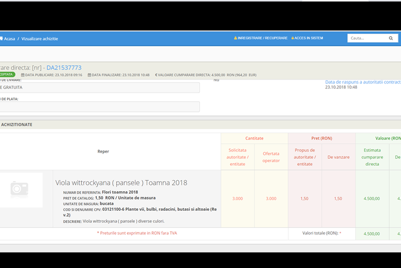Oamenii nu mai stau prin orașul pustiit, mulți dintre ei alegând plecarea către București în detrimentul luptei în Teleorman, iar cei care încă n-au plecat, pur și simplu, sunt prea bătrâni sau resemnați. În tot acest timp, autoritățile locale fac cumpărături în SEAP. Puținele licitații se pierd printre cumpărările directe și vizează achiția de chestiuni de tot râsul: artificii, pavaje tactile și mai nou flori.Practic, dacă te uiți în SEAP, constați că orașul Zimnicea are acum mai nevoie de panseluțe. Da, de panseluțe! Nu contează luna achiziției, pentru că iarna vine mai târziu în ultima vreme, ci faptul că în Zimnicea se moare de foame, dar totuși se găsesc 4.500 de lei pentru 3.000 de panseluțe. Ele sunt cumpărate de direct de la un anume Ion Emil Gabriel din județul Teleorman. Pentru că astea sunt prioritățile și pentru că oamenii n-au mare lucru de spus, genul ăsta de achiziții vor face orașul Zimnicea faimos. Nu mai mult decât e Videle, dar totuși... e tragi-comic.