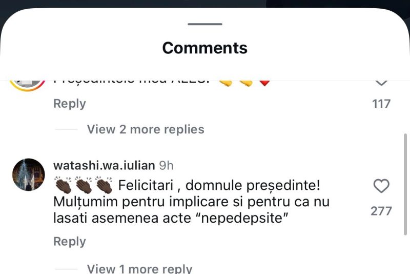„Felicitări, domnul Nicușor Dan, președinte, foarte bine că faceți lumină în acest caz”, a mai transmis un alt internaut.