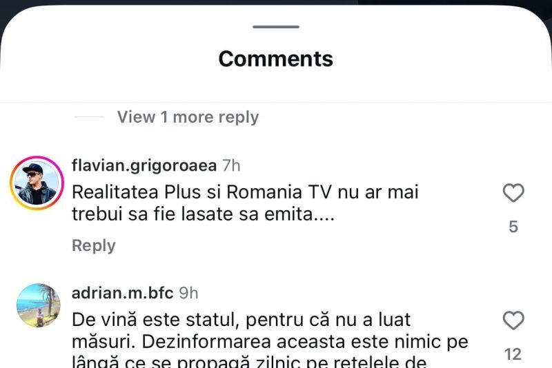 „Am auzit foarte multe dezinformări, în special din partea România TV și Realitatea Plus. Acest jurnalism este unul populist care complotează în permanență. Este incredibil cum mulți români cred în astfel de conspirații și minciuni. România are în dumneavoastră un președinte de valoare cum nu am văzut în ultimii ani”, mai spune o altă persoană.