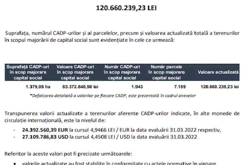 Raportul de evaluare arată prețuri ridicole pentru suprafețe de teren in zone cu un potențial imobiliar uriaș : 100 lei/mp la Constanța, 95 lei/mp în Ilfov.