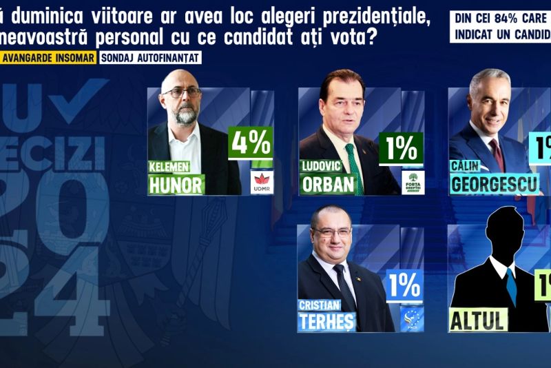 La întrebarea "Dacă duminica viitoare ar avea loc alegeri prezidențiale, dumneavoastră personal cu ce candidat ați vota?", românii au răspuns: