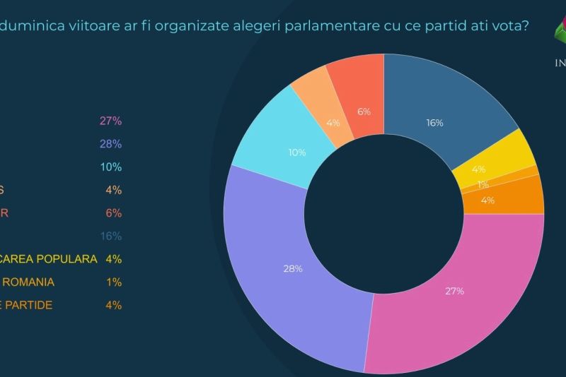 Pe locul 3 se află Alianța AUR, cu 16%, urmată, la mare distanță, de USR - 10%.