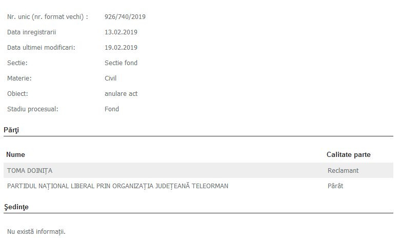 Doinița Toma, cadru didactic de meserie, cu principii liberale, a fost dată afară din PNL Teleorman în urmă cu câteva luni pe motiv că ar fi avut postări critice pe Facebook și i-ar fi jignit pe unii dintre colegi. Aceasta a primit decizia excluderii într-o ședință de partid, fără a i se prezenta dinainte motivele, fapt care i se pare aberant. Doamna profesor a recunoscut la vremea respectivă că ar fi avut câteva comentarii despre situația actuală a partidului și despre nivelul de implicare în activități al unor colegi, fără a jigni pe cineva. Aceasta a mai spus că a fost acuzată că nu a fost la unele activități la care nu a fost chemată. Pentru această situație, Doinița Toma a dat în judecată partidul care a dat-o afară. Demersul a fost înregistrat pe portal, la Judecătoria Alexandria, dar nu are, deocamdată, termen de judecată.
