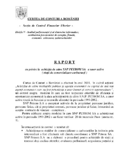 Raportul curții de conturi din 2005 se arată că au existat numeroase tranzacții făcute de Petrom, la prețuri mult peste cele ale pieței, în perioada 1999-2002. Afacerile ar fi fost realizate în interesul unor persoane intermediare. Practic, au fost cheltuiți banii statului în favoarea unor oameni agreați de fosta putere.