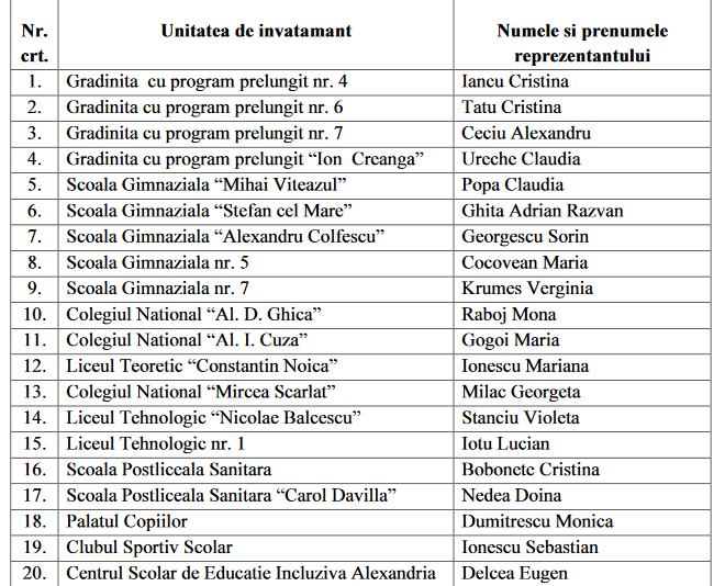 În afară de faptul că au urmat, ca tot omul, cursurile unei unități de învățământ, mai cu simț de răspundere sau nu, oamenii puși în aceste zile să fie reprezentanții comunității locale în unitățile de învățământ din Alexandria nu au alte implicații în curicula școlară actuală. Cu toate astea, mai mulți angajați pe la primărie, pe la societățile din subordinea primăriei, consiliul local și consiliul județean au fost propuși de către Puterea din Consiliul local Alexandria să răspundă de evaluarea și asigurarea calității în unitățile de învățământ pentru anul școlar 2018-2019, în școlile și grădinițele din capitala Teleormanului. Primul care ne-a sărit în ochi a fost Lucian Iotu, pus director la Administrare Imobile din subordinea Primăriei Alexandria, o societate inventată pentru a le lua banii contribuabililor să facă lucrări de mântuială. Despre Lucian știm cu toții, cei care i-am văzut ”expunerea” în funcția de viceprimar, că are dificultăți în a vorbi corect limba română, dar primarul de la Alexandria a considerat că el este competent să vegheze învățământul la Liceul Industrial nr. 1 (fostul Rulmentul). Măcar i-au dat un liceu pe măsură. Pe listă se află și fina primarului, celebră în presă pentru că a făcut afaceri cu primăria la care lucrează, prin firma soțului. Cristina Teodorescu a fost trimisă la Palatul Copiilor. Tain de la școli ia și Chiran Valentin, consilier județean, despre care avem mari dubii că știe cum se numește. Surpriză (sau nu), la Grădinița cu program prelungit ”Ion Creangă” o regăsim pe cea care se laudă de câte ori poate cu admirația pe care o are pentru primul condamnat din PSD, Simulescu Adelina. Și lista roșie poate continua.